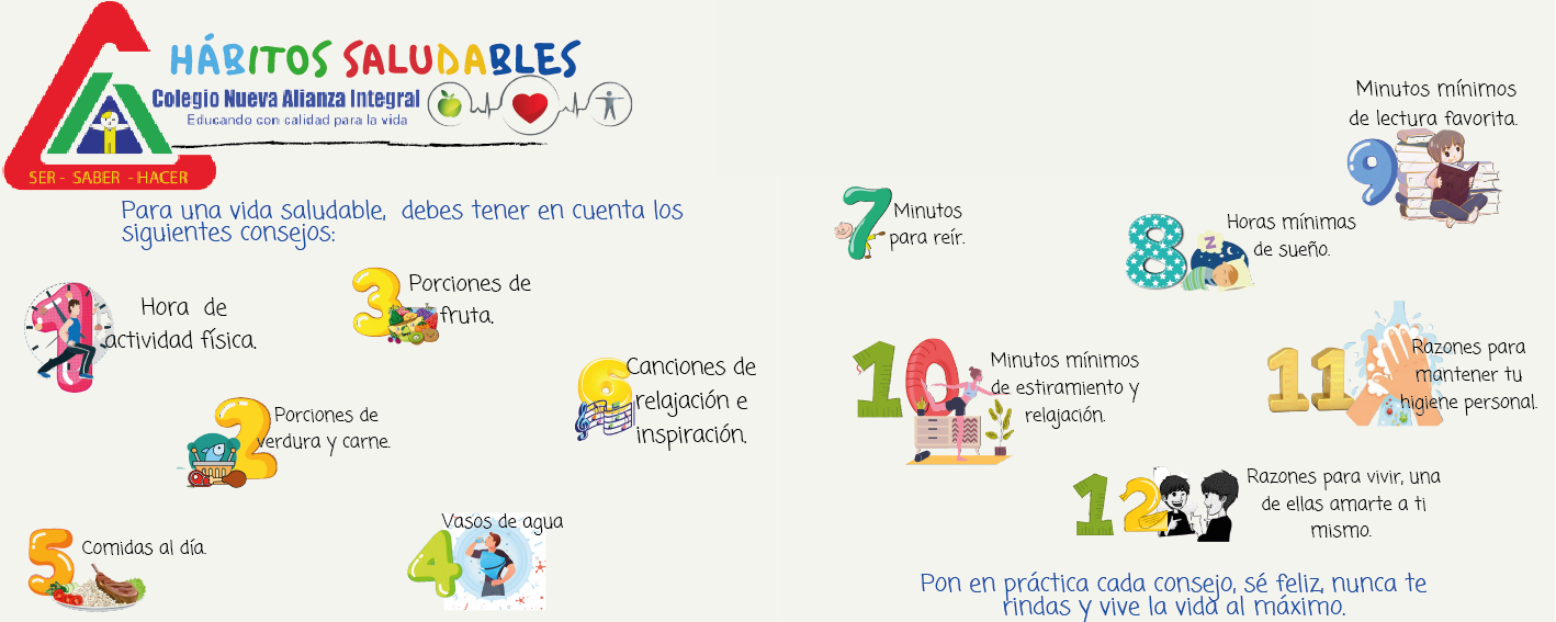 El área de Educación Física, Recreación y Deporte, con el propósito de contribuir en el mejoramiento de la calidad de vida sana y activa de la comunidad aliancista, desea compartir periódicamente consejos de hábitos saludables.