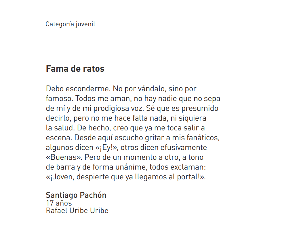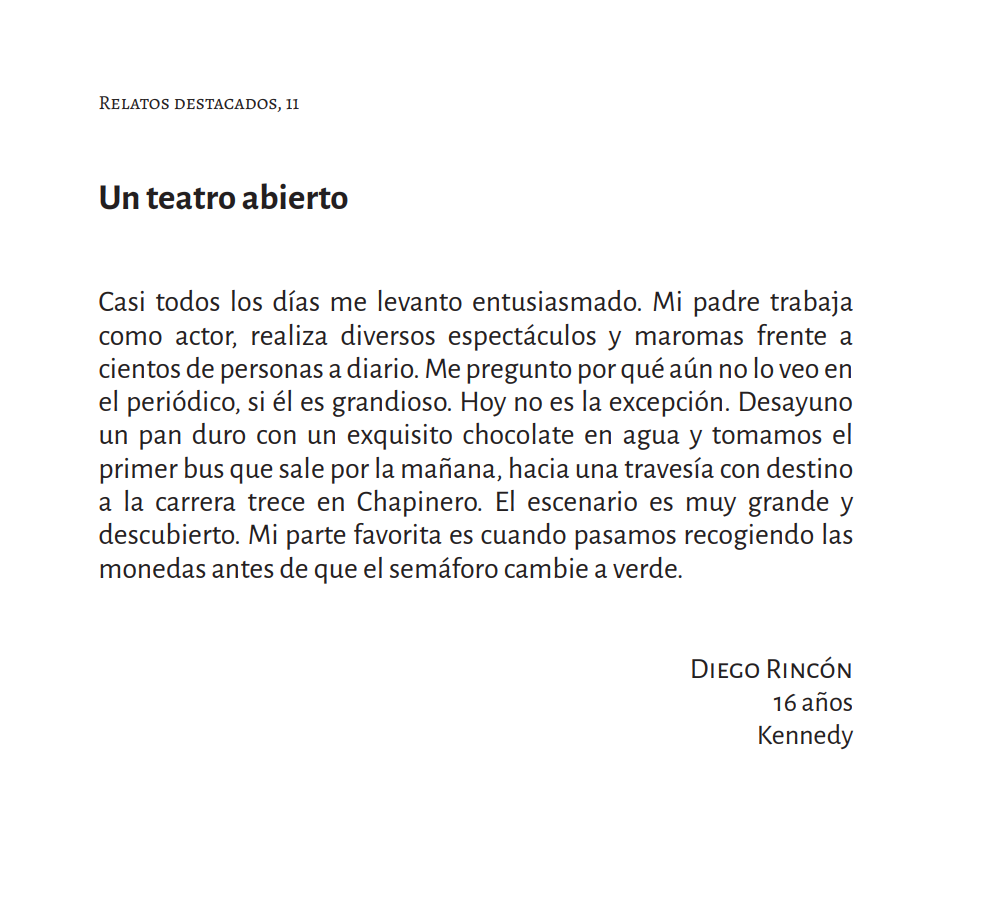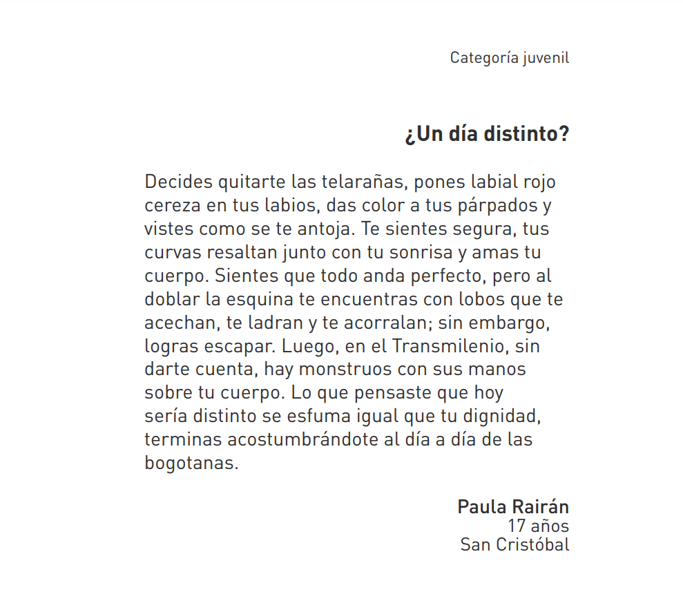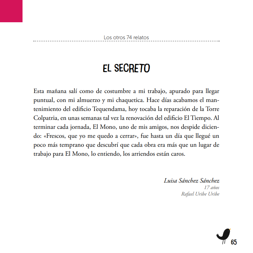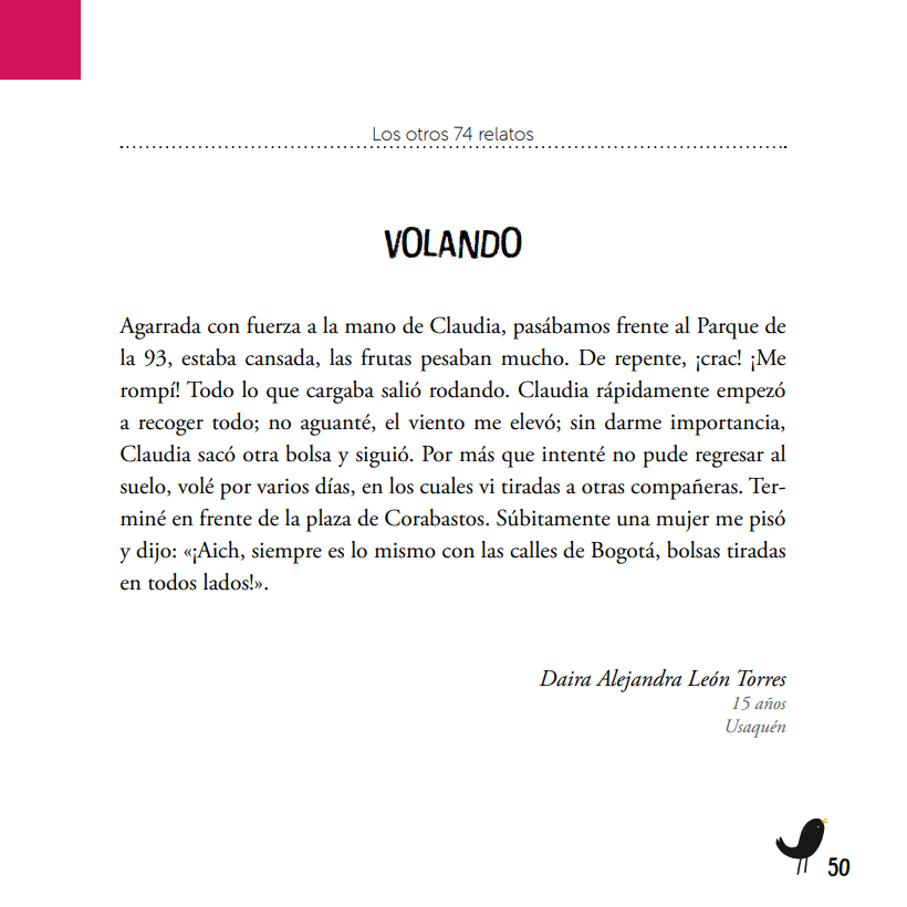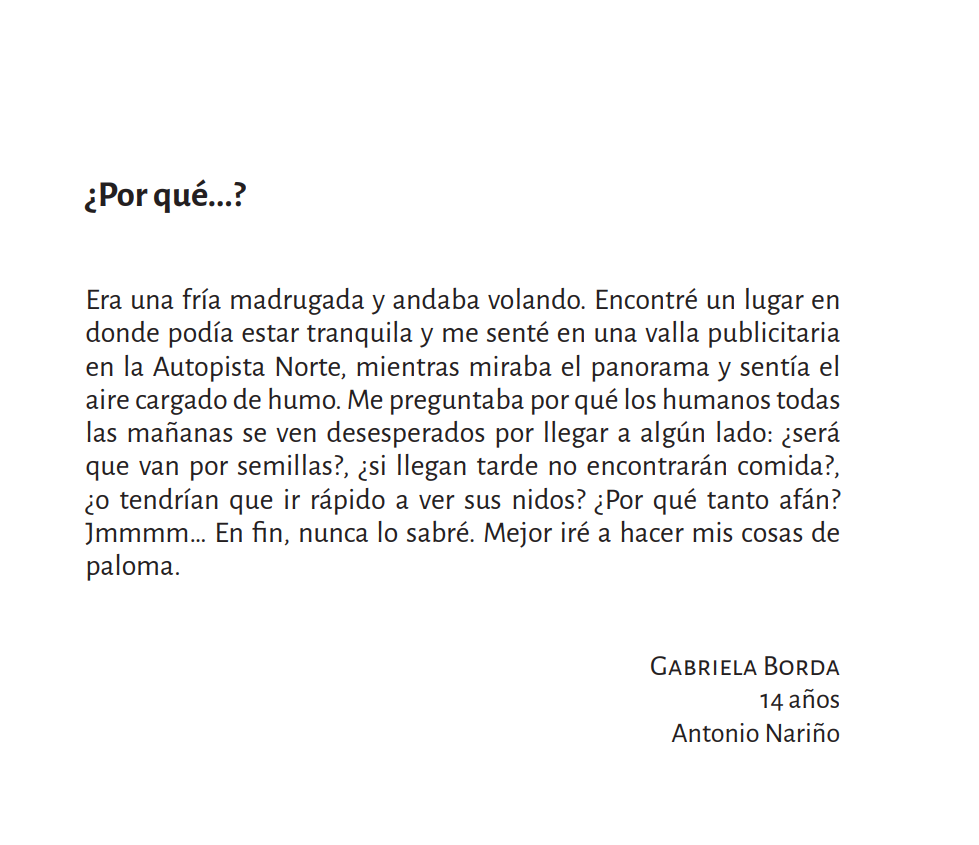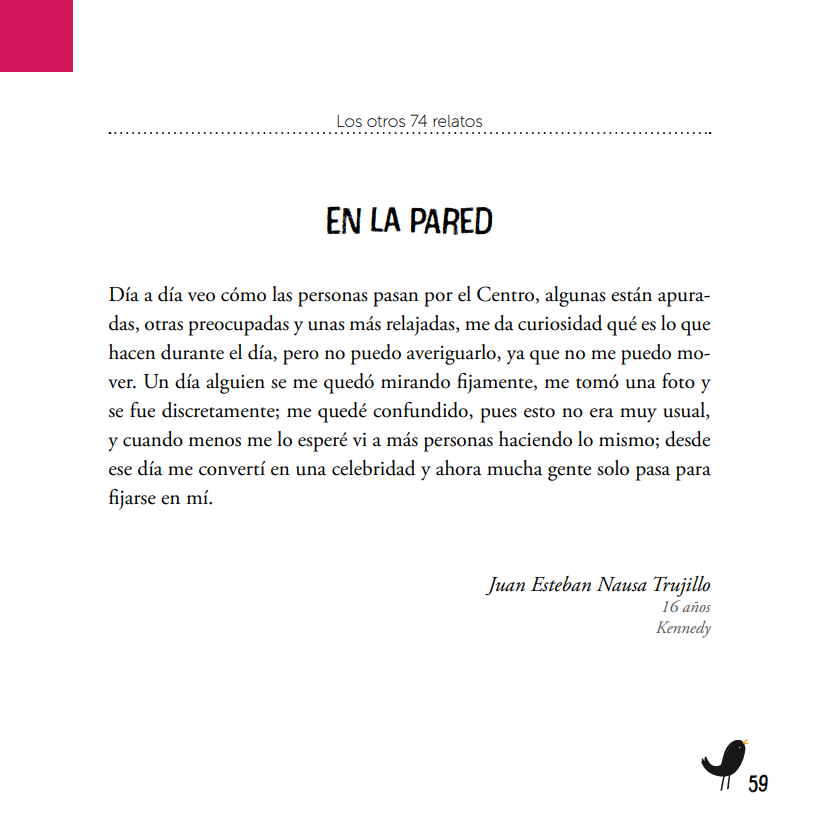 Desde el área de humanidades hemos venido participando tres años consecutivos en el concurso de Bogotá en cien palabras y es de nuestro interés resaltar el trabajo realizado y compartir con la comunidad educativa los relatos que han hecho parte de las ediciones de Bogotá en cien palabras.