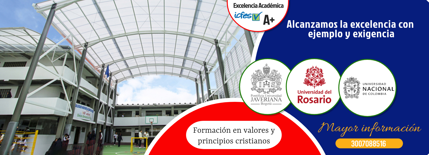 Comprometidos con nuestro Proyecto Educativo Institucional “Educando con Calidad para la Vida” y conscientes del protagonismo de los estudiantes en su proceso de formación académica y personal, por más de cinco años hemos adelantado convenios con instituciones de educación superior que favorecen el proceso de inmersión a la vida universitaria, el acompañamiento en la elección de carrera como proyecto de vida y el acceso a becas totales o parciales. De esta manera se fortalecen dinámicas de tipo académico, cultural, formativo y experiencial determinantes en el proceso de formación integral.